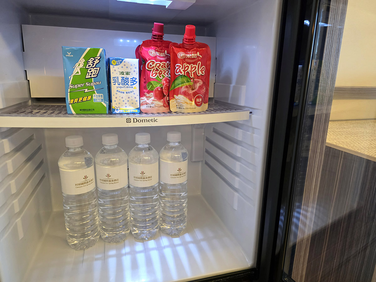 房間內會在冰箱內準備迎賓飲料(依專案及房型提供),辦好入住進到房間就先來一瓶飲料是最舒服的了。