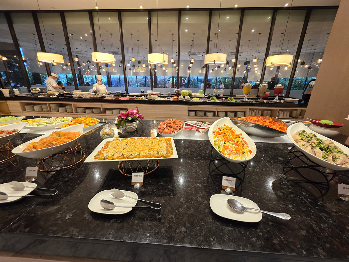 隔天早餐是在1樓大廳旁的明廚百匯用餐,用餐的時間為06:30-12:30。村却國際溫泉酒店最讚的就是早餐可以用餐到中午12:30,晚一點起來吃,等於吃早午餐,連中餐都省下來了。