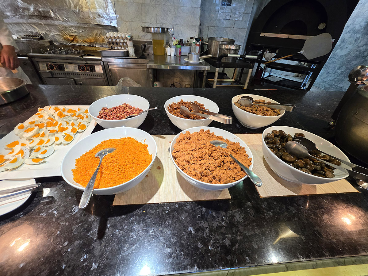 喜歡吃中式早餐,這裡會提供粥品跟多種小菜,喜歡吃西式早餐,可以選擇這裡的玉米片、麵包、牛奶、生菜沙拉等。