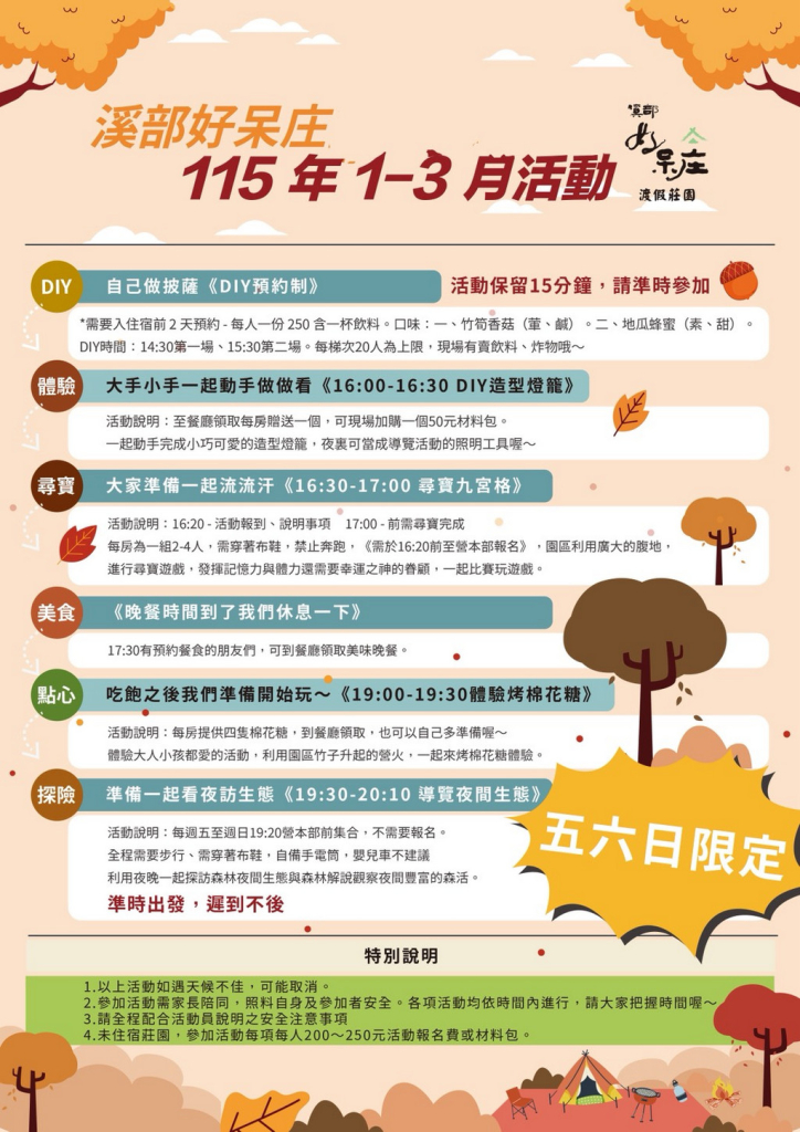 每房再贈燈籠DIY*2份(16:00-16:30前到需到溪部餐廳領取製作)