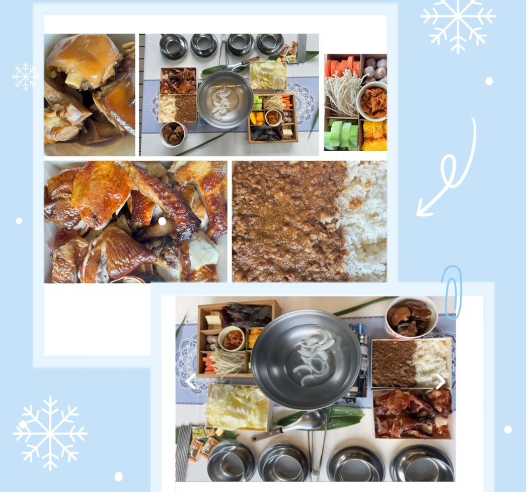 2026/01/01起,開放新的晚餐火鍋套餐供加購,一套1580元。晚餐內容:烤雞一份、豬腳一份、肉燥一份、白飯一盒、蔬食火鍋食材一套、高湯塊。並提供器具:卡式爐一台、火鍋鍋子一個、湯匙一隻、四人份餐具(鐵盤+鐵碗+鐵筷),若有需要, 於線上訂完房後,入住日3天前自行聯絡好呆庄進行預定。