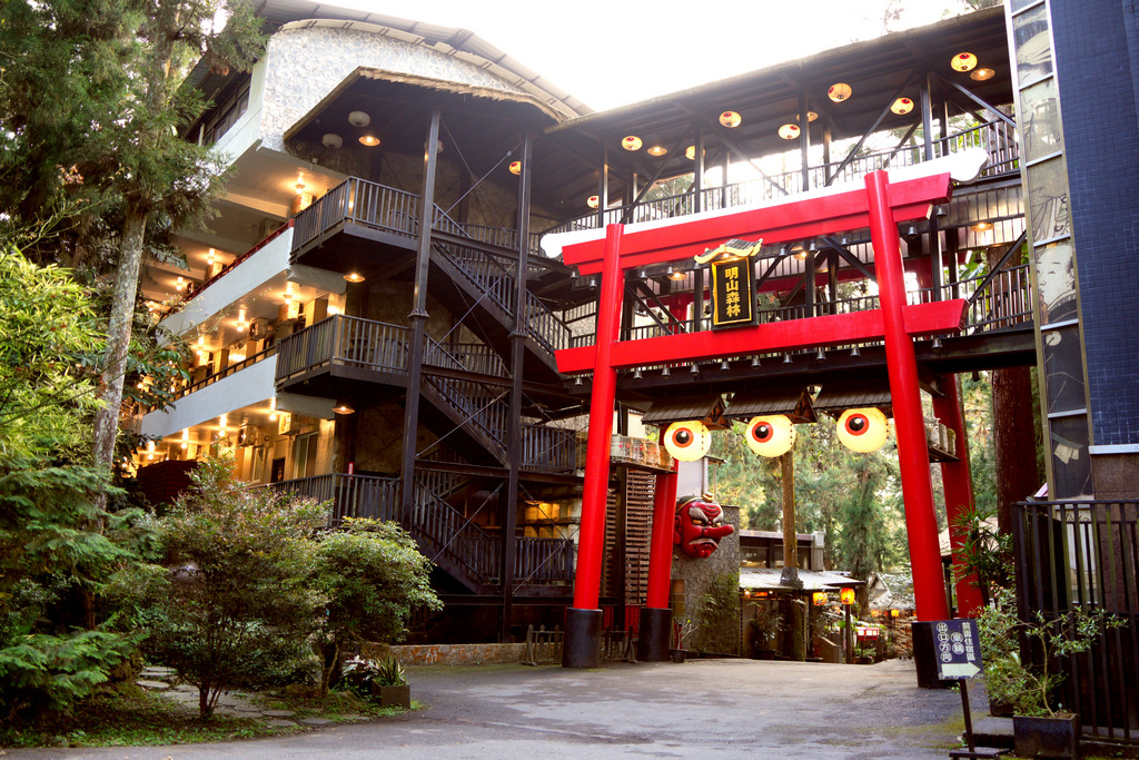 在明山森林-溪頭松林町另一邊較靠近森林園區,有一座日月鳥居跟3個大眼睛的燈籠,成為園區新的拍照景點。
