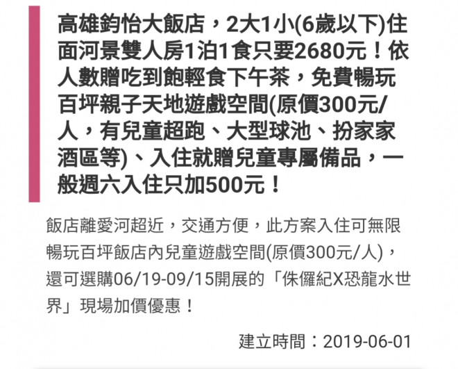 釋出一組高雄鈞怡大飯店2大1小序號,若有需要,請直接聯繫我,非常感謝