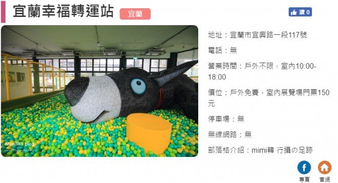 宜蘭幸福轉運站位在宜蘭車站旁,距幾米廣場約150公尺,於2016/05/24正式開幕,這裡是由原國光客運車站改建,希望延續幾米風格,打造幸福城市。園區裡分有戶外免費遊玩空....