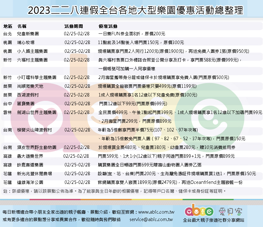 228連假要去哪裡呢?02/25-02/28全台各地的大地主題樂園都有優惠活動哦,快來看看!