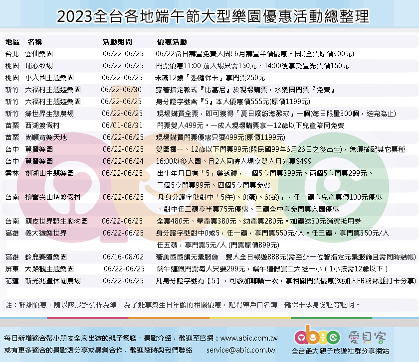 端午節4天連假要去哪裡呢?06/22-06/25全台各地的大型主題樂園都有優惠活動,快來看看!