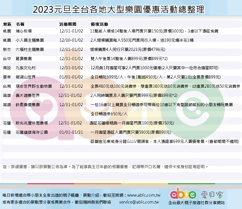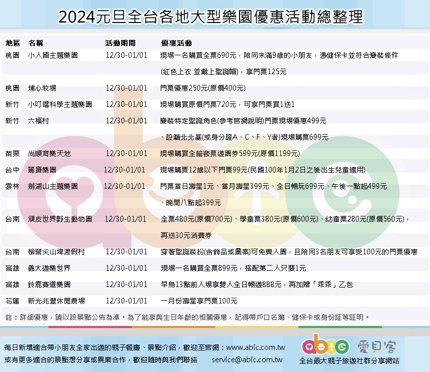 元旦年假要去哪裡呢?12/31-01/02全台各地的大地主題樂園都有優惠活動哦,快來看看。