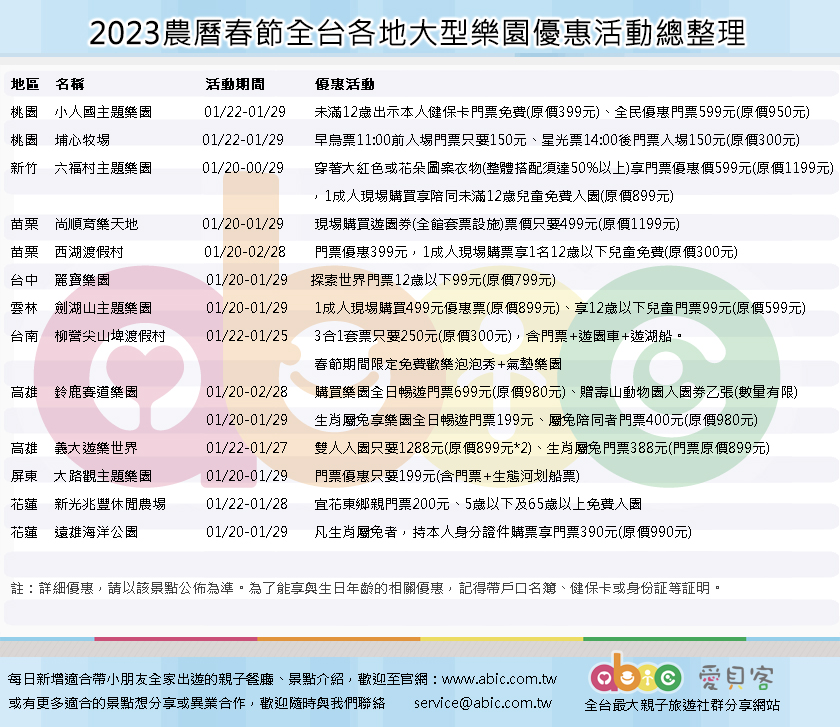 農曆春節要去哪裡呢?01/20-01/29全台各地的大地主題樂園都有優惠活動哦,快來看看!