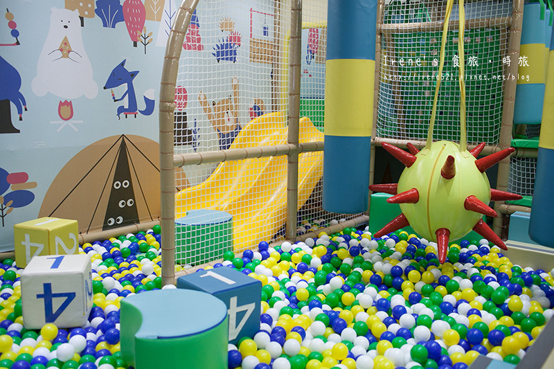 兒童遊戲室限6歲以下小朋友遊玩,入內需穿襪子,裡面是一座溜滑梯球池,球池上方擺放一些玩具,另外小朋友入座也會提供可塗鴉menu與蠟筆,吃飽後還會給小朋友代幣去扭蛋。