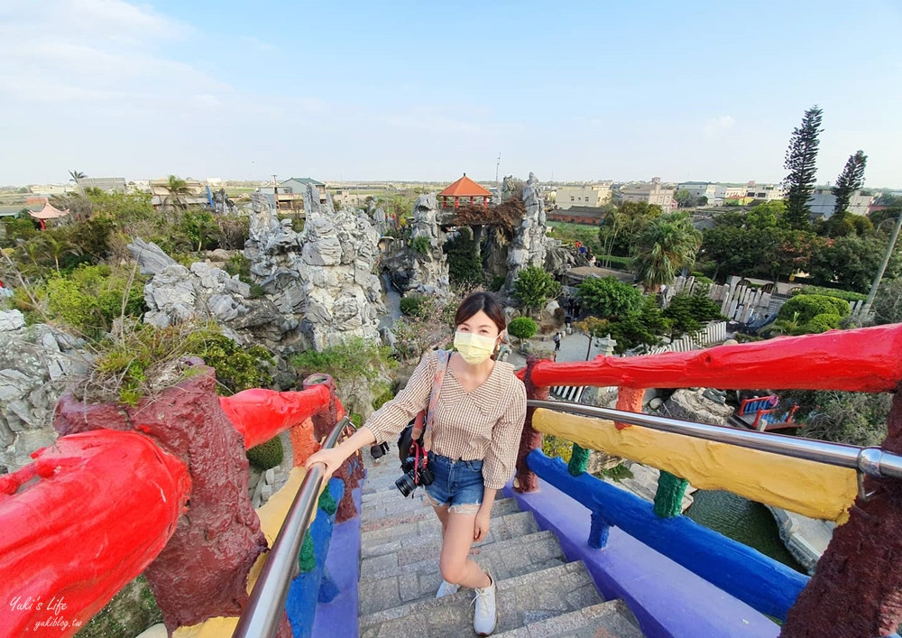 雲林-五年千歲公園是由馬鳴山鎮安宮所管理,佔地超過一公頃,是全台第一座也是最大的寺廟主題公園,裡面利用奇岩異石為主體架構,隨著地形起伏彎繞,仿佛走入大型奇幻迷宮裡,全程約1.5小時,途中可見大小瀑布,穿入石洞地道,走上彩虹景觀橋,各種特色景觀,一路走來都不無聊。