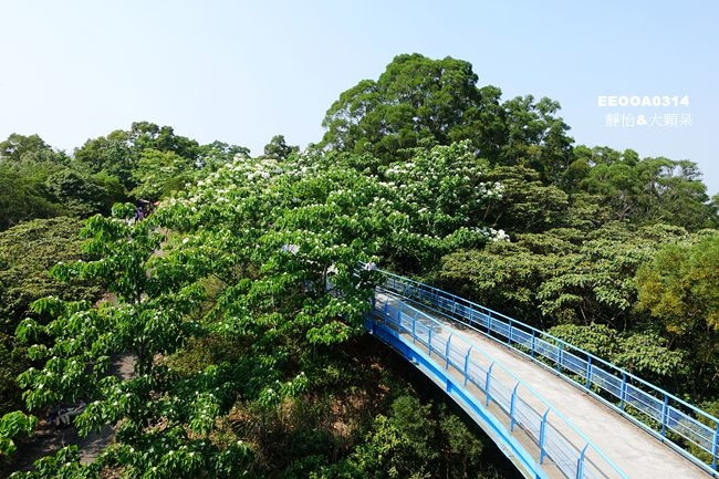 藍色的步道與天空相呼應,道路平坦易行,天空步道除了景觀台需走階梯上去,其他路段可使用推車,小小孩也可以放心行走,寬闊的視野讓人心曠神怡,很適合親子出遊。