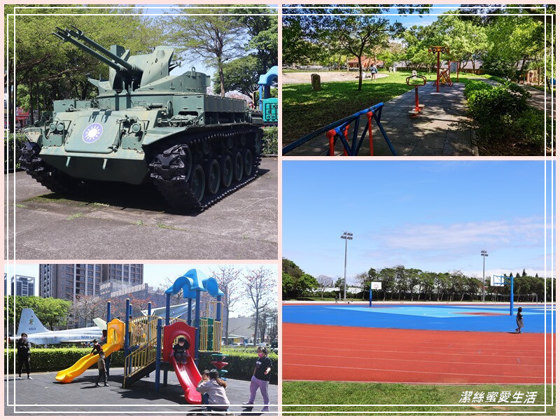 全新遊戲場設計軍事設施挑戰、小勇士訓練、菁英體能等主題區;分齡設計,讓大小朋友開心玩!適合6-12歲的飛彈攀爬網,純白設施很吸睛,裡面有3層繩網攀爬關卡、擺盪大球與2座高滑梯;適合2-12歲的乳姑山勇士坡有磨石子滑梯與大沙坑;其它還有小山訓闖關設施、旋轉蹺蹺板、旋轉攀爬架、壕溝軍事體驗、體能擺盪;盪鞦韆有鳥巢、包覆、尿布、雙人、單片等造型,連成人體健設施也更新更多元。