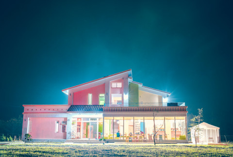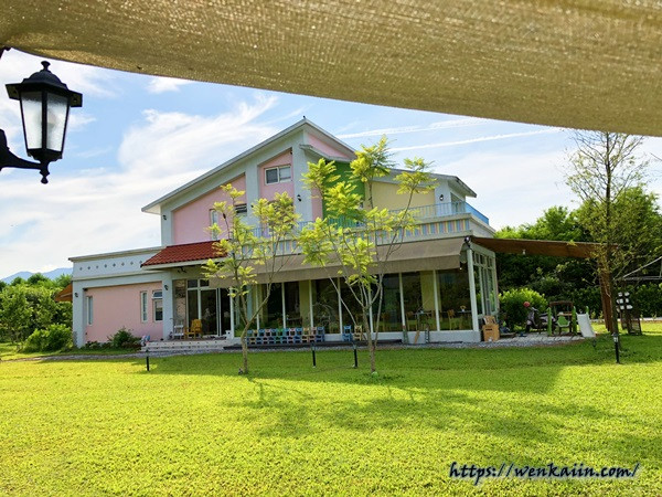 晴天裡飛翔親子莊園位在花蓮縣壽豐鄉,民宿擁有大空間戶外庭園,寬敞的草皮讓人心情開朗,粉色系的歐式獨棟別墅加上大片落地窗帶點夢幻色彩,小朋友不僅可以在戶外跑跳,房內也有溜滑梯與多樣玩具可以玩。