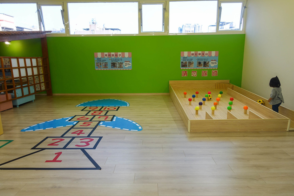 館內有一個巨型彈珠台,小朋友用腳踢足球當彈珠打。這裡的辦家家酒區也很有趣,有柑仔店與早餐店,店內擺放由不織布做成的古早味點心、與餐點,小朋友背著傳統藍紅袋採購結帳模樣逗趣又可愛。另外還有手作區讓小朋友隨時DIY,育兒中心每週都會與辦說故事、DIY與團康等活動,部份活動會收取20-30元,有興趣的爸媽請上粉絲專頁查看報名。