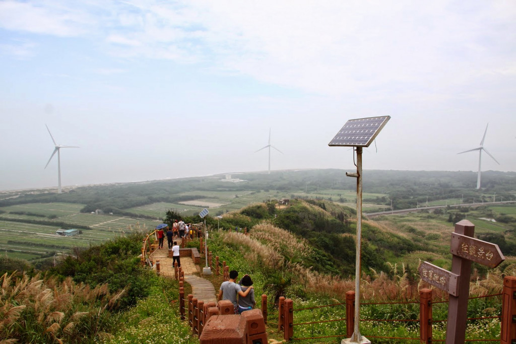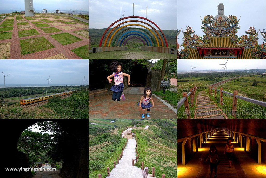半天寮好望角位在苗栗後龍,因地點就在濱海山丘的制高點,一望無際的海景呈現在眼前,成排的大風車轉轉轉,不時還會有火車呼嘯而過。