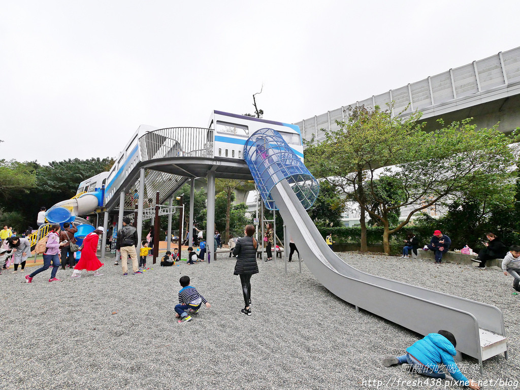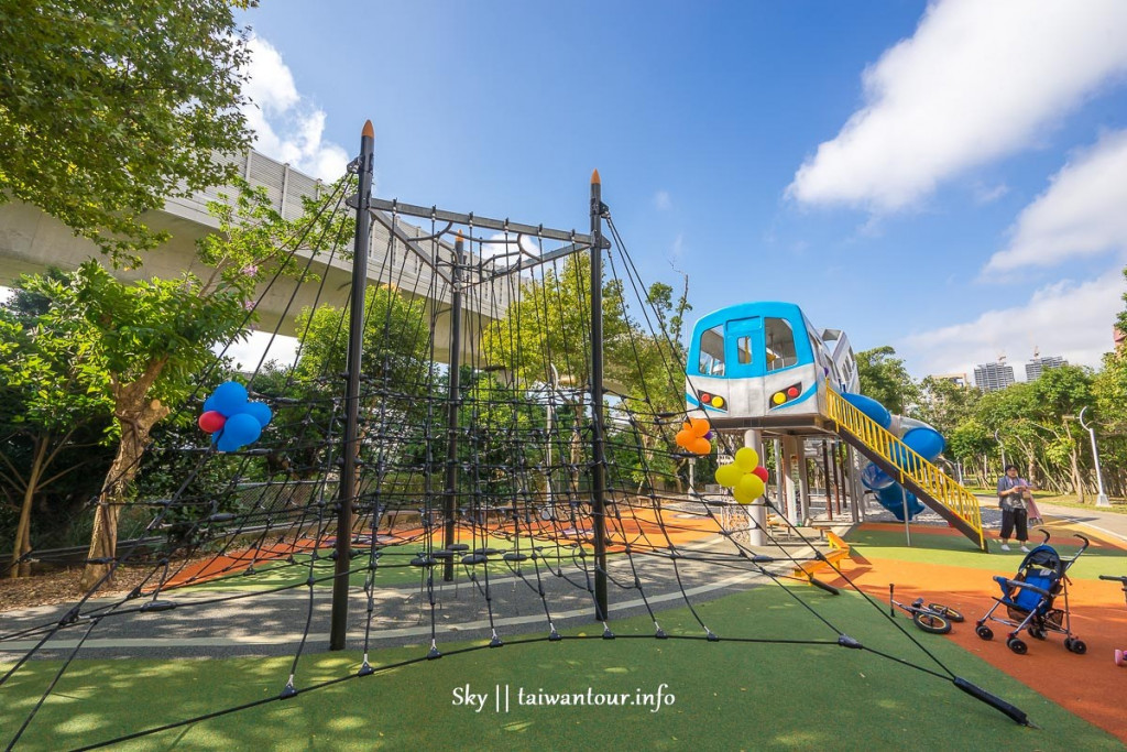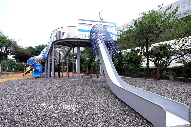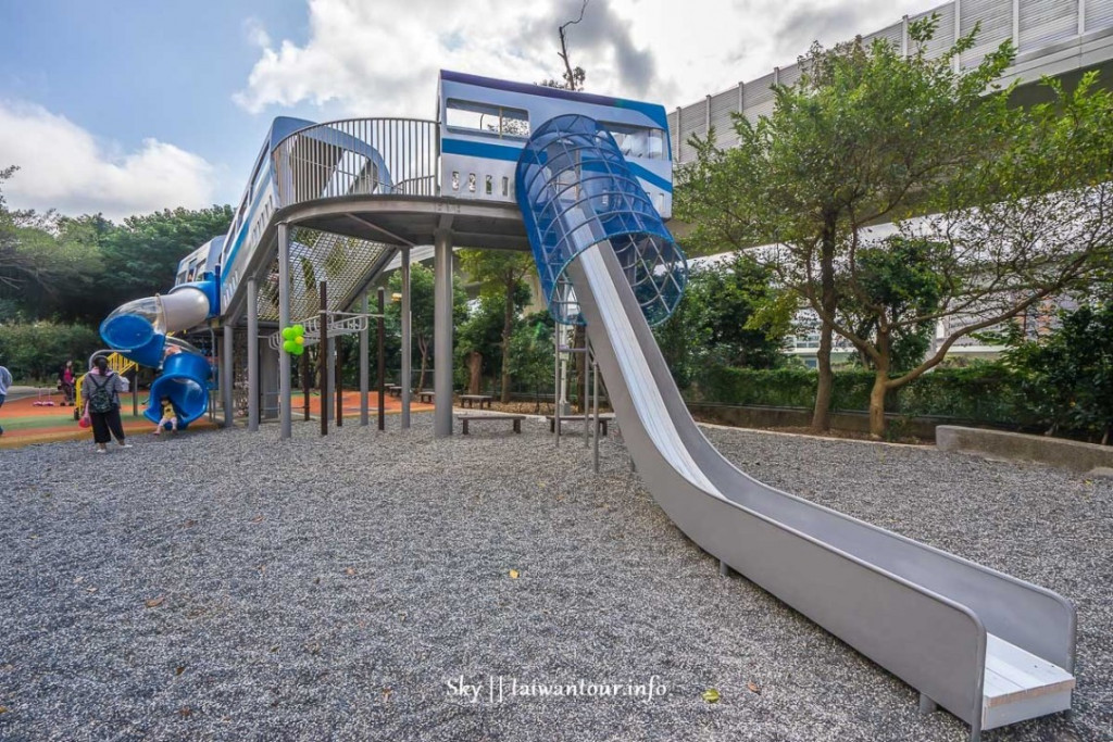 林口樂活公園全台首座捷運主題遊戲場,於2018/11/13正式啟用,大型溜滑梯遊具以捷運車廂為外型,有一個旋轉溜滑梯與全台第一個4米高塑木溜滑梯,塑木滑梯超滑順超刺激,小朋友們快來挑戰遊玩趣。