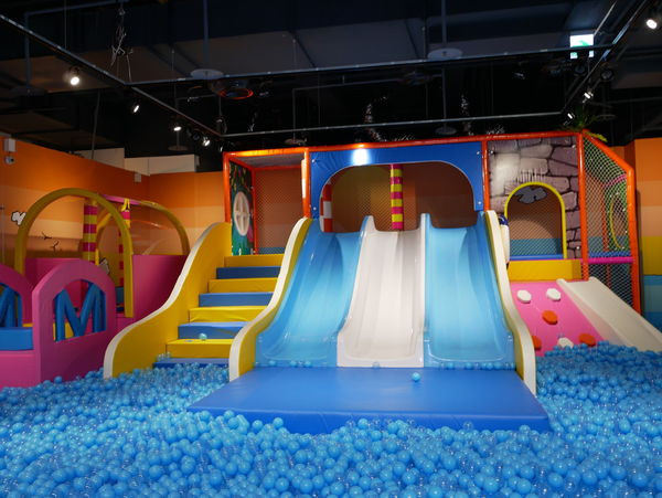 板橋環球購物中心就在板橋車站上,交通非常方便。館內以異國風情為主題,將各國特色融入遊戲區內,像德國工藝有木製工程玩具、積木與風動水管球;日式神社內是給幼兒玩的溜滑梯;浪漫的巴黎則是溜滑梯球池與辦家家酒區。