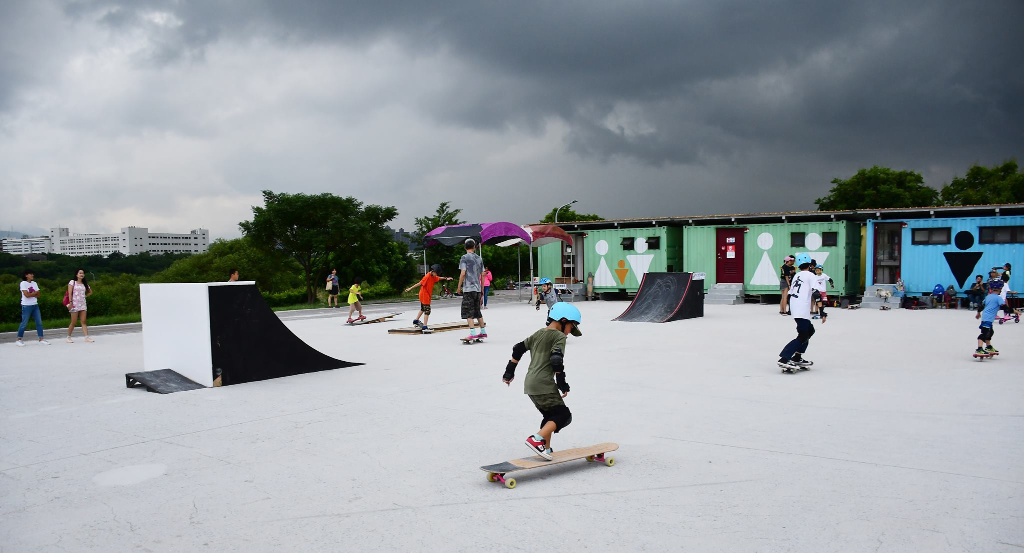 露營區利用當地山丘地型打造多樣輪板體驗場,也給大小朋友一個安全的環境玩輪板,有筆直的長板區、專為兒童設計的滑板體驗區、直排輪體驗區等,到了夜間也有明亮的照明,讓小朋友盡情玩輪板,另外營區也有開辦專門體驗課程。