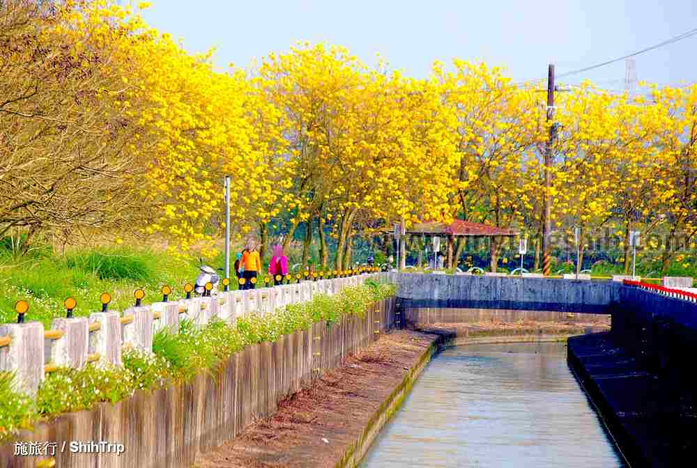 龍潭鄉三坑石門大圳鐵馬道,單程長2.4公里,沿途有清澈大圳,還有綠樹成蔭作伴,除了騎單車外,因全程平坦無坡度,適合全家大小踏青健行。
