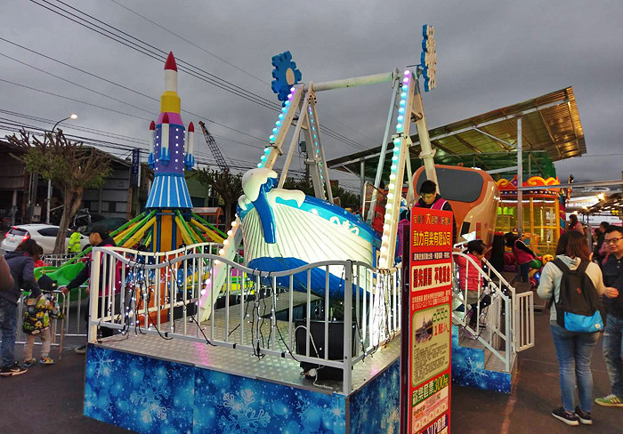 一旁可以看到大型遊樂設施,有旋轉木馬、海盜船、小火車、熱氣球等大型遊具。