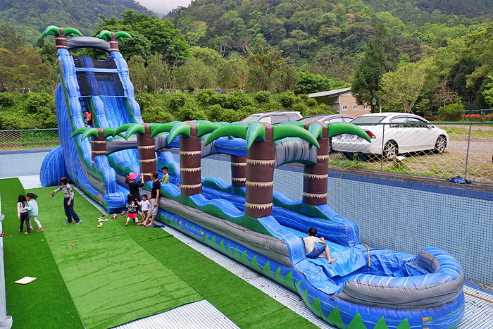 氣墊在夏天時會放水,滑下去更是暢快,光這座氣墊就可以玩很久。