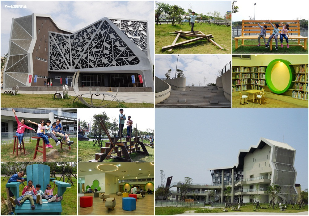 幾合圖形建物外觀帶有獨特美感,吸引多人前往拍照打卡,戶外規劃適合親子遊憩空間,草皮可以讓小朋友跑跳,有巨大椅子裝置藝術,小朋友坐上去好像來到巨人國,拍起來很有喜感。另一側還有大樹遊戲區,大樹四周用繩網架圍起,小朋友可在網架上攀爬遊玩,一旁還有原木打造的攀爬、平衡木與輪胎鞦韆遊具。