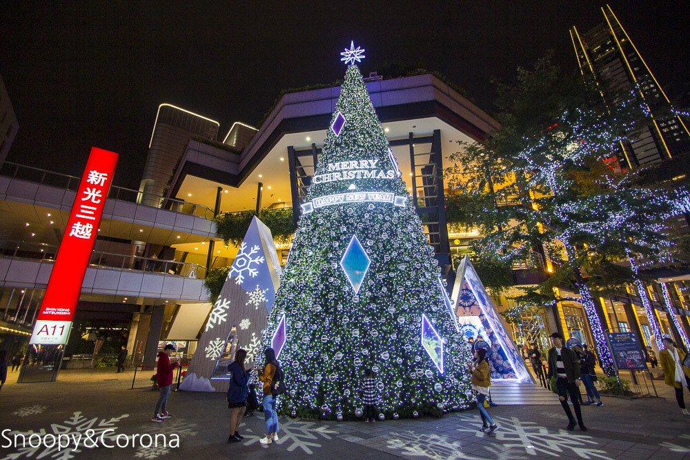 台北信義區的聖誕活動很熱鬧,有台北夢時代的愛.Sharing、Bellavita寶麗廣場BEAR KINGDOM,新光三越信義新天地A4、8、9、11也於11/27點起璀璨燈光,A11前香堤廣場有高達17米耶誕樹,每個整點還有雪花燈光秀。