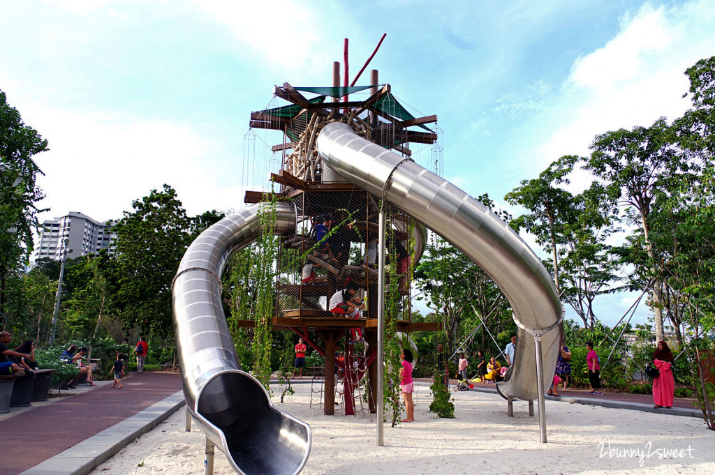 公園有大片湖泊並種植約30萬顆植栽,生態豐富、景觀優美。最吸引小朋友的就是戲水區與森林風遊戲場,Clusia Cove戲水區分為淺灘潮水區與沙灘區,小朋友戲水玩沙一次滿足,且新加坡終年如夏,隨時都可玩水。