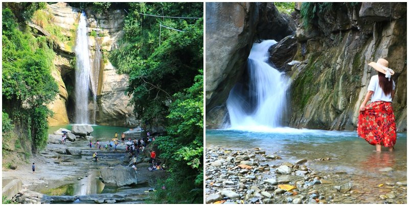 這裡最棒的是不用辛苦的跋山涉水,停好車步行1分鐘就到瀑布區了,瀑布由山壁環繞,若遇豐水期景色很壯觀,很好取景拍照。不過瀑布下方水較深,不適合戲水,小朋友可在前方淺水區玩水,一旁也有樹蔭遮陽,不少家庭會來此野餐或烤肉。