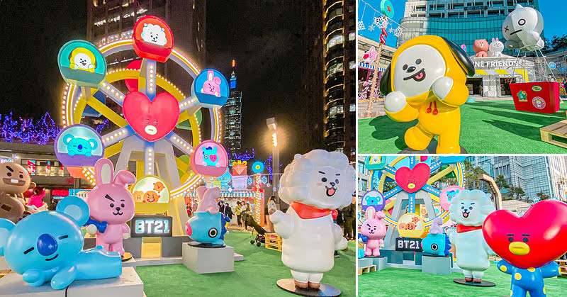統一時代二樓廣場上出現可愛的熊大與兔兔,摩天輪造景裡還有莎莉、饅頭人、詹姆士等人氣角色;BT21知名的RJ、CHIMMY、TATA、KOYA、VAN也都在現場與大家同樂。
