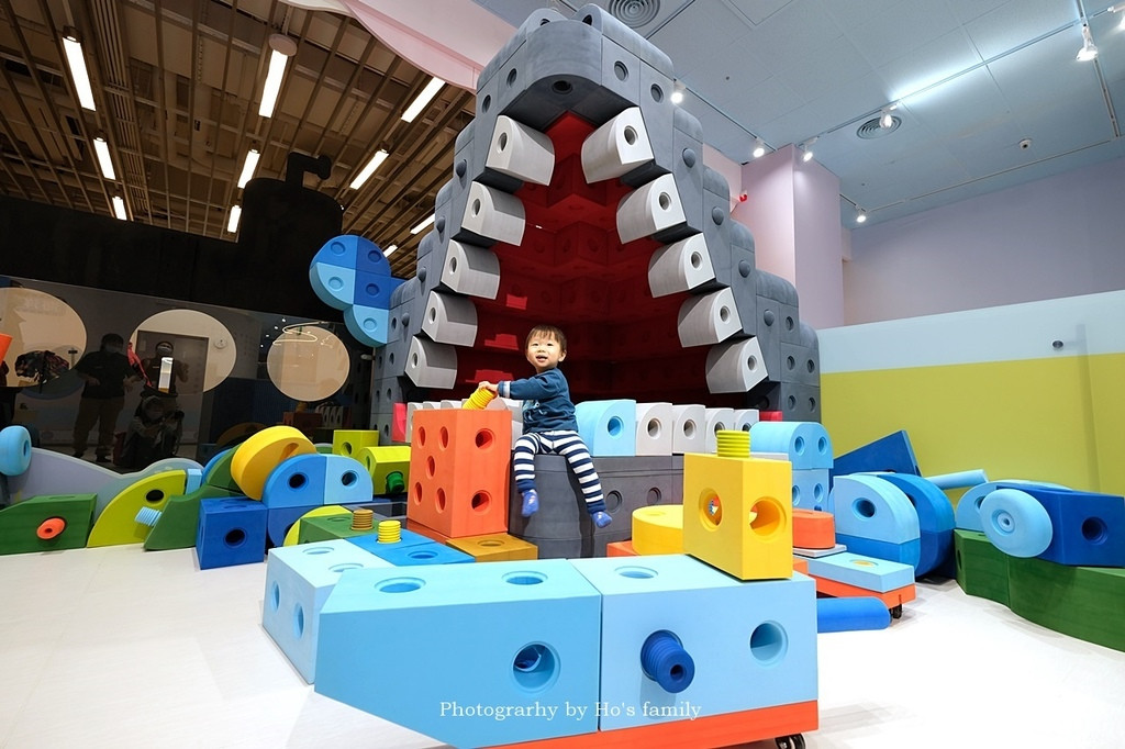 桃樂比互動遊戲區以趣味桌遊與益智積木為主,其中大型的積木超吸睛的!樂園利用大型建構式積木組成大大的鯊魚嘴巴,周邊有各式造型積木,讓小朋友發揮創意,組出獨特的作品來。