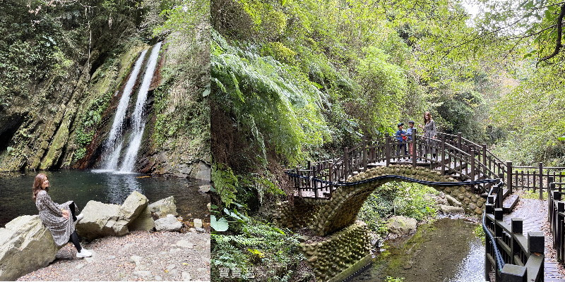 中高海拔山林景觀特別漂亮,山林青蔥、溪水清澈,裡面悠游的小魚吸引小朋友的注意。沿途會經過2座古色古香的拱橋,終點是里埔瀑布,站在瀑布旁吸收負離子,感受大自然的美好。