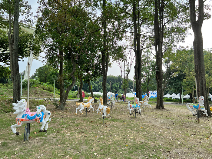 樹林下還有旋轉木馬造景,可以坐上去拍照。