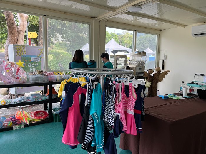 這裡還有個小賣間,裡面販售小點與飲料,夏天也有販售泳衣泳圈。(戲水池需著泳衣下水,若忘記帶可在此購買)