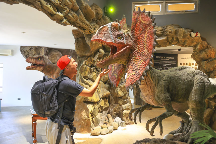 全新裝修後的地質館變的更有科幻感,館內分為入口意象服務、深海岩石、蛋型投影、恐龍及植物模型造景、玄武岩介紹牆、出口展示共6區,一進去就被高聳的玄武岩與在空中的滄龍吸引目光,小朋友最喜歡的就是恐龍區了,比人高大的恐龍很有震撼力,且還會發出吼聲並擺動身體,一個不注意會被嚇到呢。