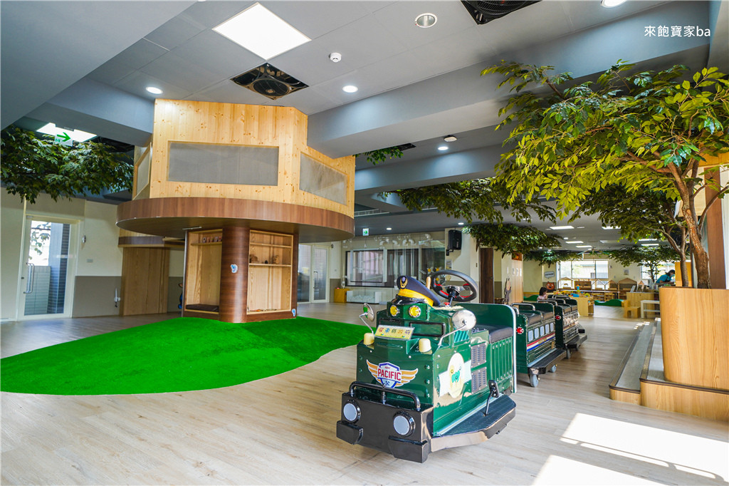 內埔托育資源中心提供0-6歲兒童免費入場遊玩,寬敞的空間利用大量木作裝潢打造森林風遊戲場,多元豐富的遊具讓小朋友盡情玩。有冒險小樹屋、空中吊橋、攀岩牆、滾球軌道、伸縮木樁,旋轉椰子樹、科學牆、角色換裝、木球池、幼兒爬爬區等,最特別的是還有室內電動小火車!雖然室內空間無法走太遠,但小朋友小火車就是開心。