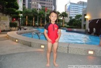 辦好入住且放置好行李後,夏天來第一件事就是帶小朋友去飯店1樓的戶外圓弧游泳池玩水(泳池終年開放)。