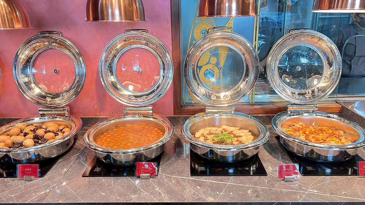 百道港式料理中在熱鍋區提供大家最愛的乾炒牛河、避風塘排骨、辣子蟹等,另外還有現點現做的腸粉,此為還有每日燉湯。