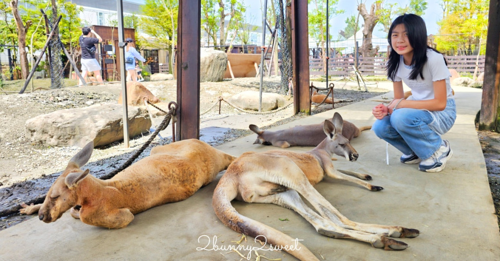 小朋友最喜歡跟小動物互動餵食了,園區內分為3大動物主題區,可以看到狐獴、水豚、兔豚鼠、陸龜、柯爾鴨、羊駝、駱馬、羊咩咩、澳洲袋鼠等動物,以及金剛鸚鵡、灰鸚鵡、巴丹、折衷等中大型鸚鵡;大部份動物都可以互動餵食,大小朋友很少有機會可以近距離觀看袋鼠,還可摸摸牠們,超有趣的。