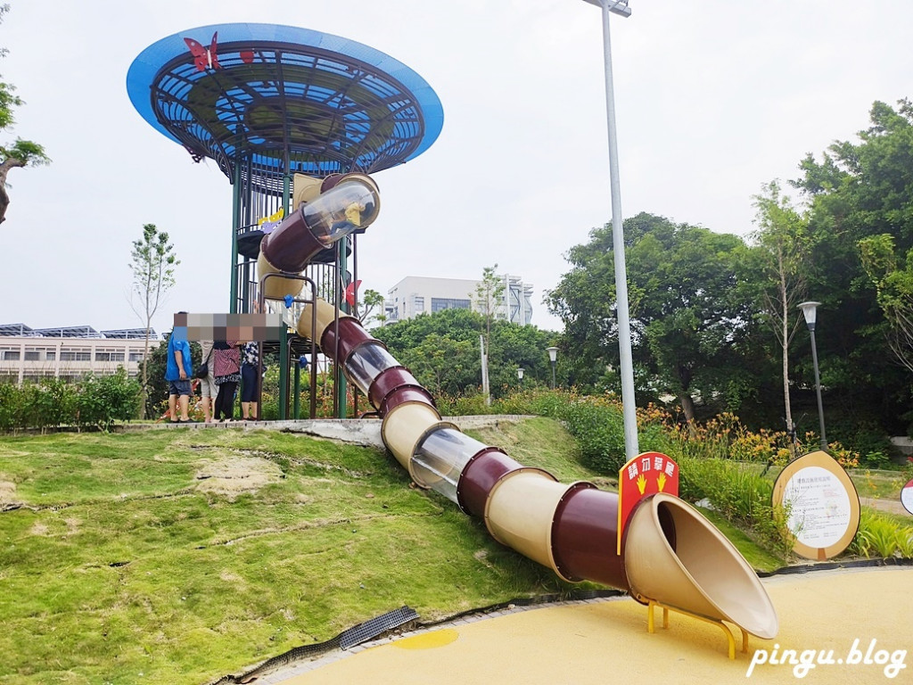 帶小朋友來這裡就是要放電遊玩,遊戲場利用人行步道畫分出2大遊戲空間。溜滑梯區有寬、窄滑道磨石子溜滑梯,以及3層闖關高塔溜滑梯,不同高低的滑梯,讓大小朋友都能開心玩,加上闖關設計,樂趣多更多!滑梯區中間還有立體繩網攀爬架、躲貓貓水管涵洞、斜坡爬網、單人旋轉杯等遊樂設施。