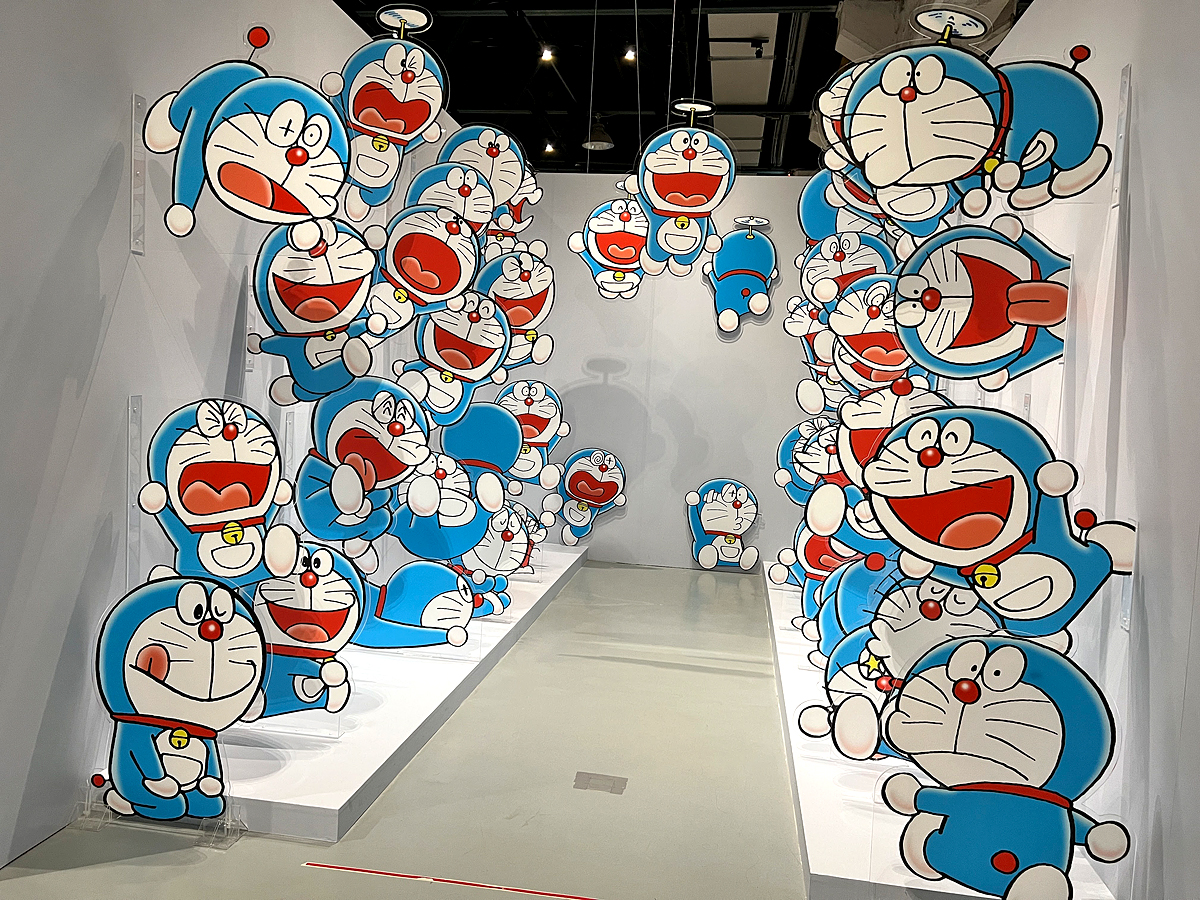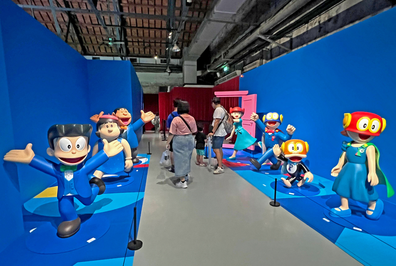 展場入口處旁12公尺高的巨型哆啦A夢充氣公仔超吸睛!一旁還有巨大鈴鐺與任意門+滿滿哆啦A夢打卡裝飾;主題展區有星光大道、復刻藤子・F・不二雄老師創作書桌、秘密道具室、巨型漫畫封面牆、近百種哆啦A夢立體公仔;放大版漫畫,各種表情與動作的哆啦A夢、經典場景,讓人如數家珍,哆啦A夢迷必訪。