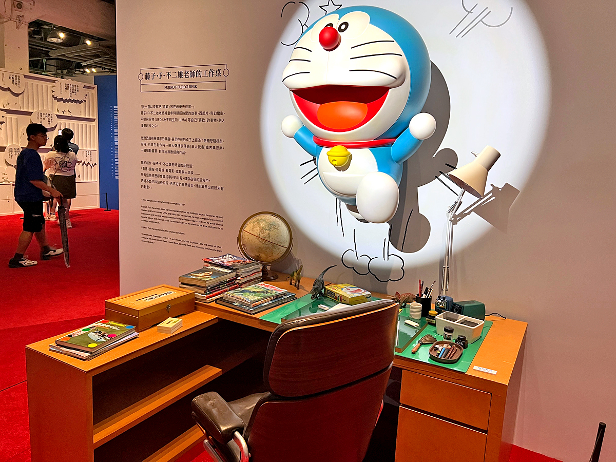 接著來到「復刻藤子・F・不二雄老師創作書桌」,哆啦A夢就像藤子・F・不二雄老師的靈感一樣,跳躍而出。