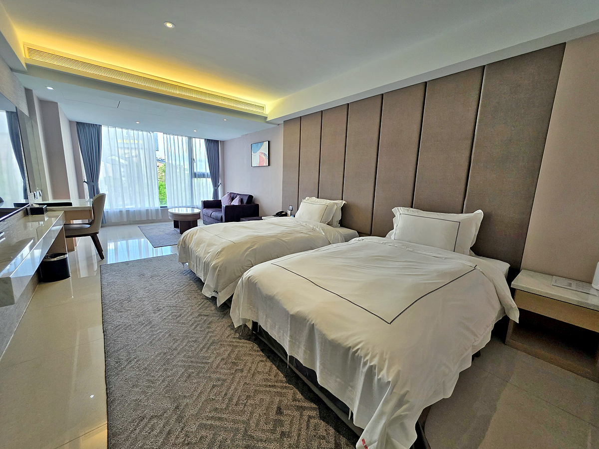 若是2大2小的家庭來入住,建議可選擇「經典四人房」的房型,此房型配備2張雙人床。