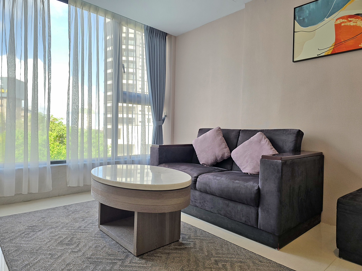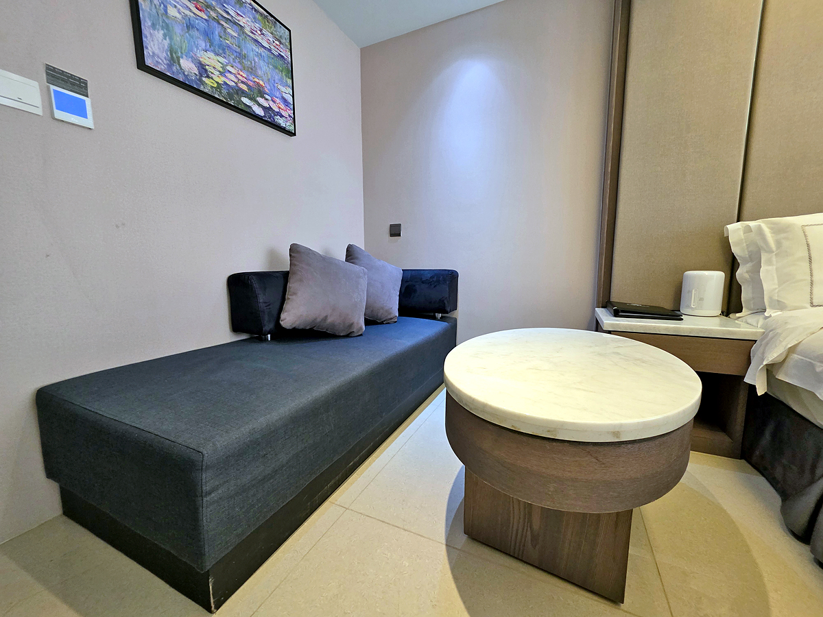 「經典雙人房」的房內會配備一張沙發與桌子,方便入住旅客聊天休息。