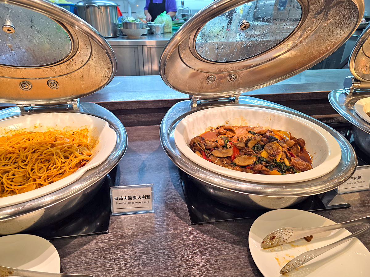 葛瑪蘭風呂會館的早餐提供各種不同品項的熱食,像是三杯雞、還有小朋友愛的義大利麵等(每季不同,以現場提供為準)。