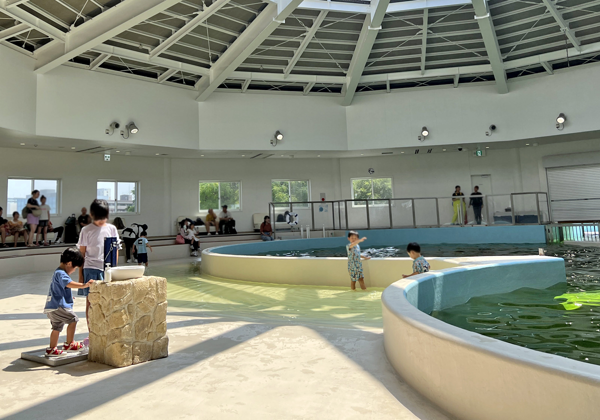 園區在水池旁打造仿海灘的淺水區,小朋友看海豚時,還能踩踩水玩玩水。