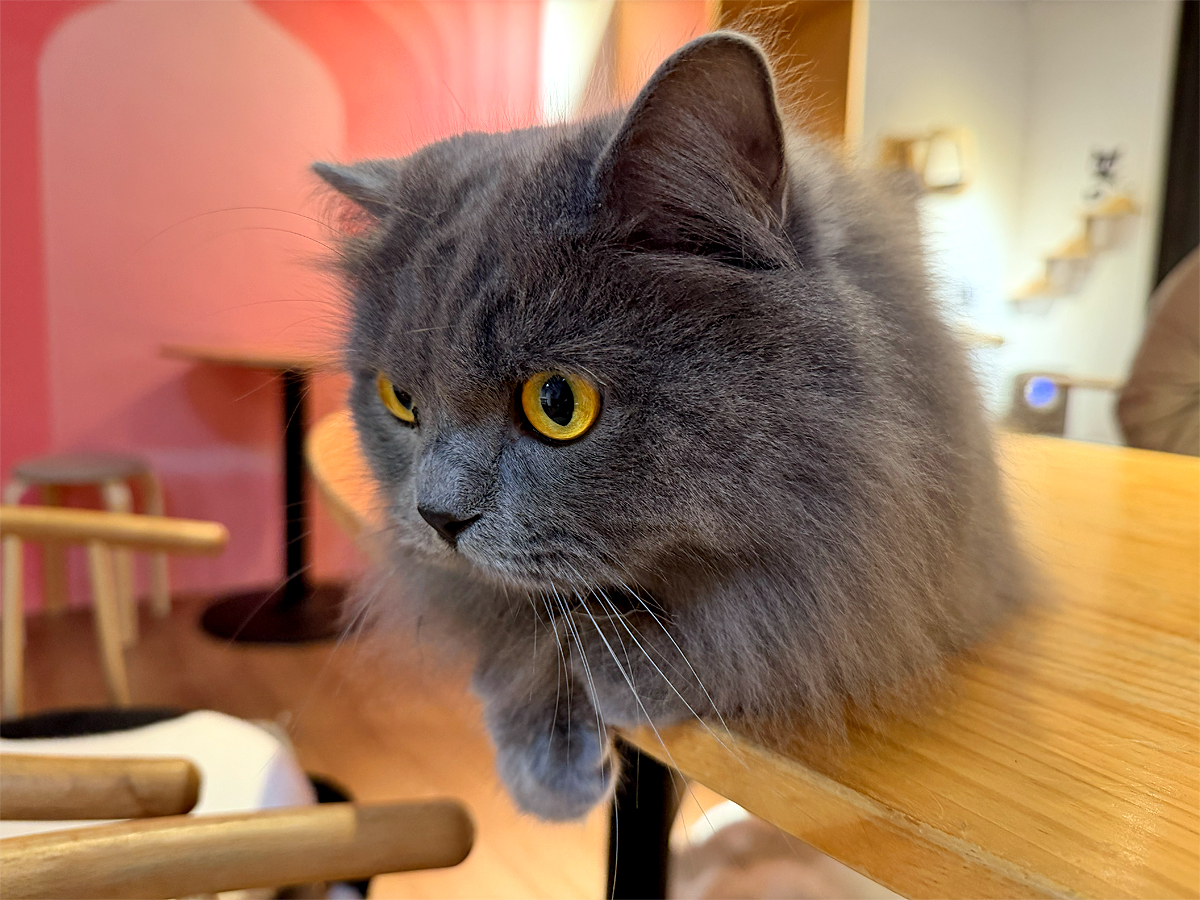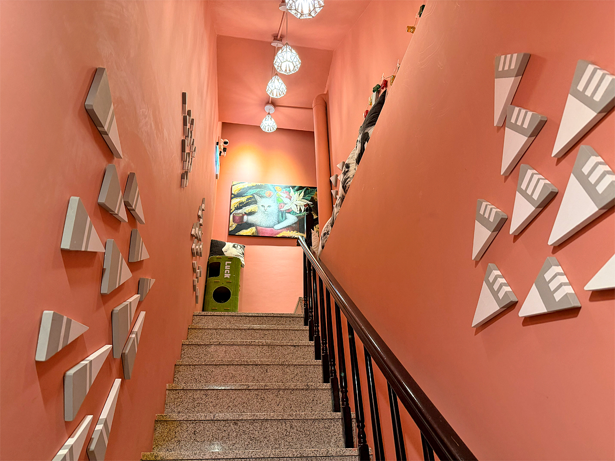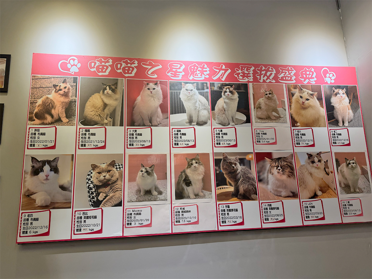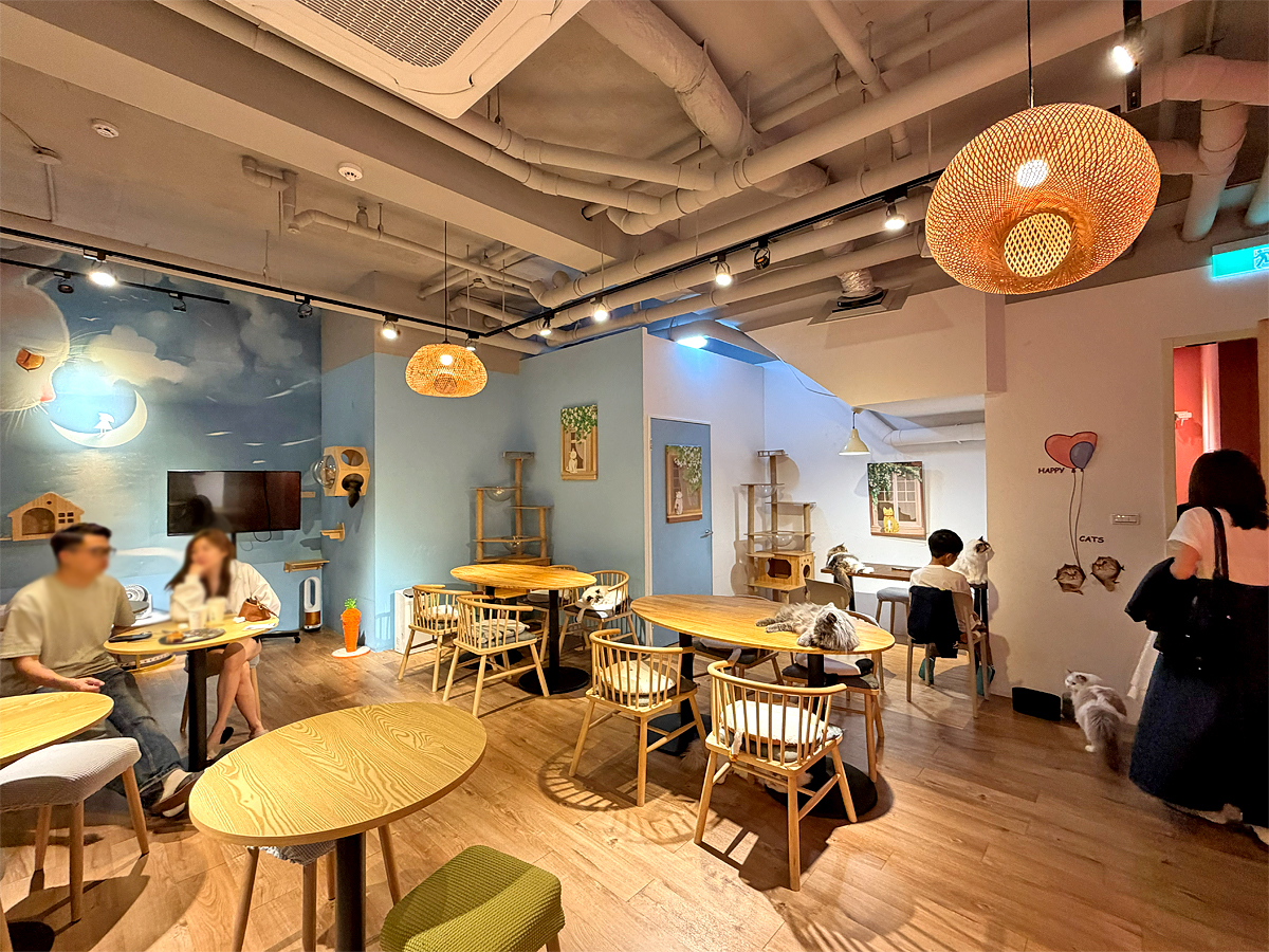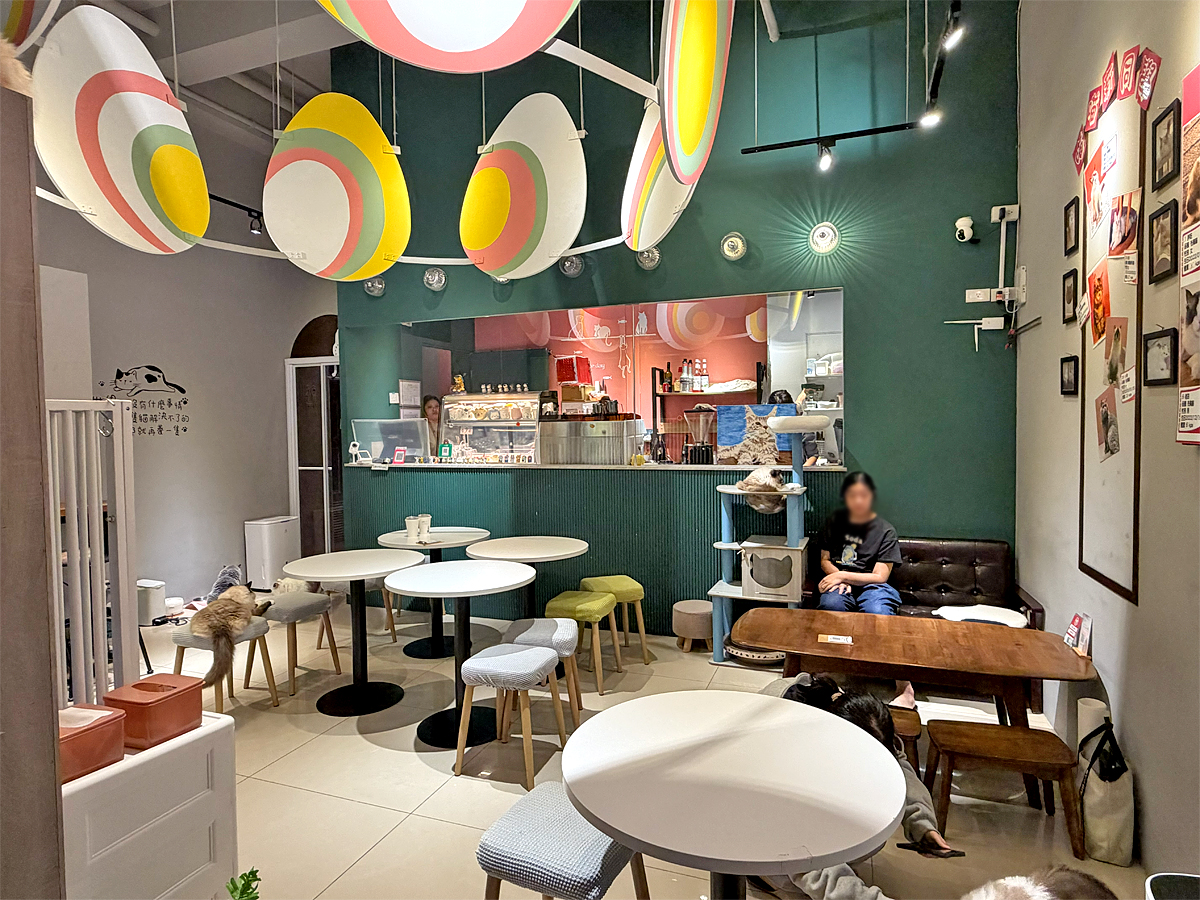 貓迷們想感受被貓咪包圍的幸福就來這,店內共有2層樓,精巧的空間佈置的很溫馨;牆面上有貓咪圖案裝飾,以及店內貓咪們的照片與名字,可以試著去找牠們,喊牠們的名字再摸摸,更有親切感,且這裡的貓咪很自在,有時用餐牠們還會跳上桌,逗趣可愛。
