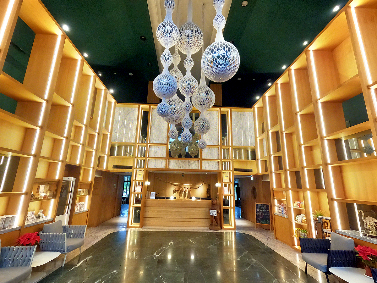 辦理入住的大廳讓人驚豔,挑高的空間搭配大理石與木質裝潢,很有質感。
