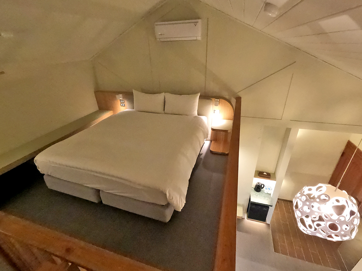 房內分別在1樓、2樓各擺放1大床,空間感更大。