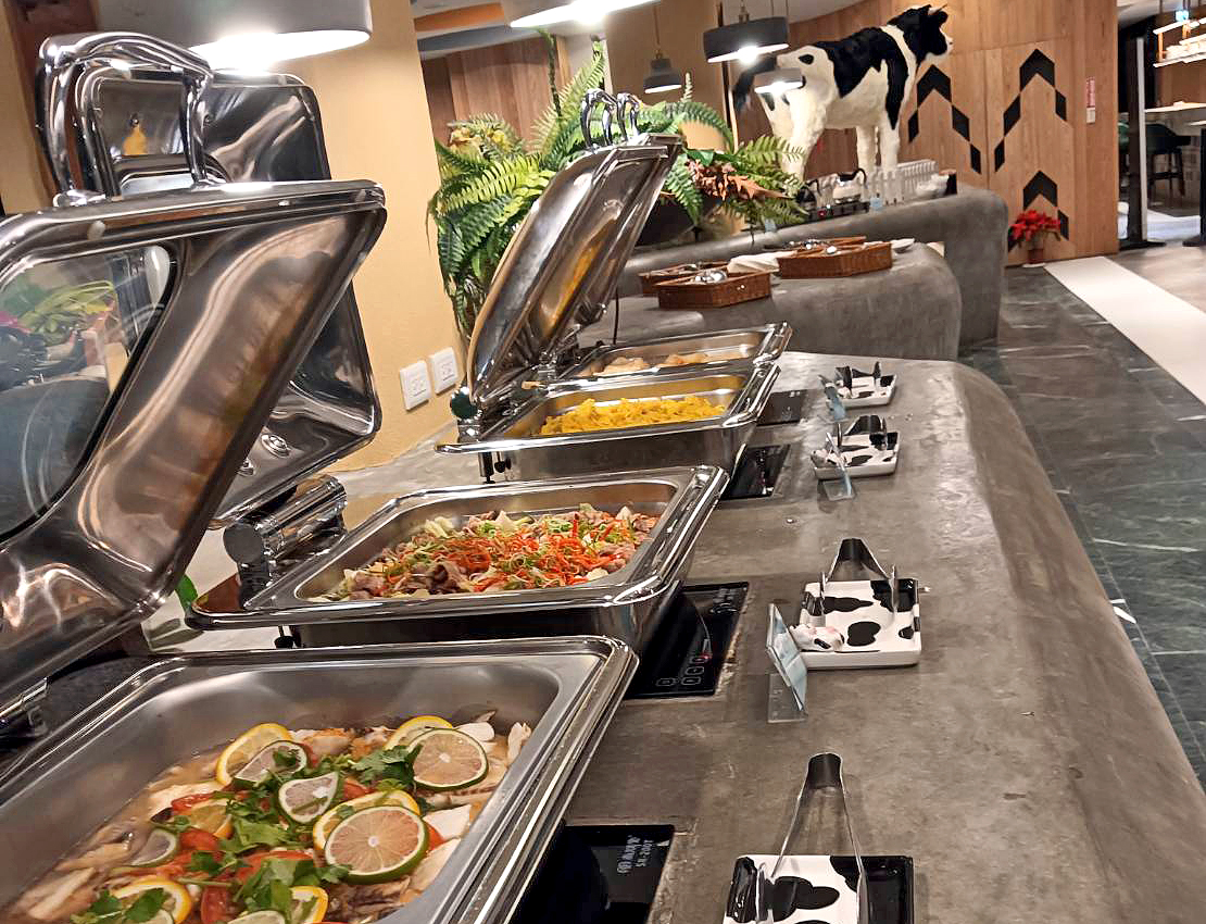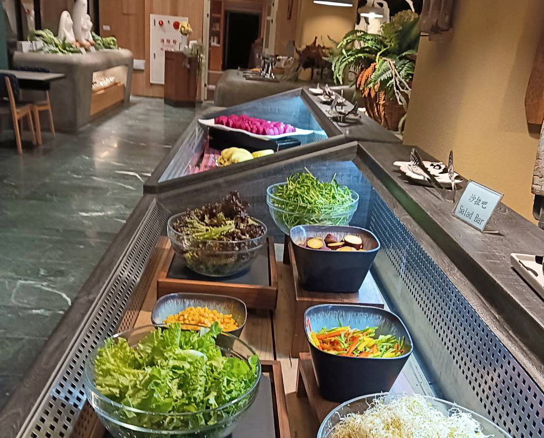 早餐採自助吧吃到飽,中西式料理皆有;可選擇清粥小菜、現蒸包子饅頭、現炒料理、麵包土司等。(菜色依季節性調整,若當日人少則改為供應套餐)